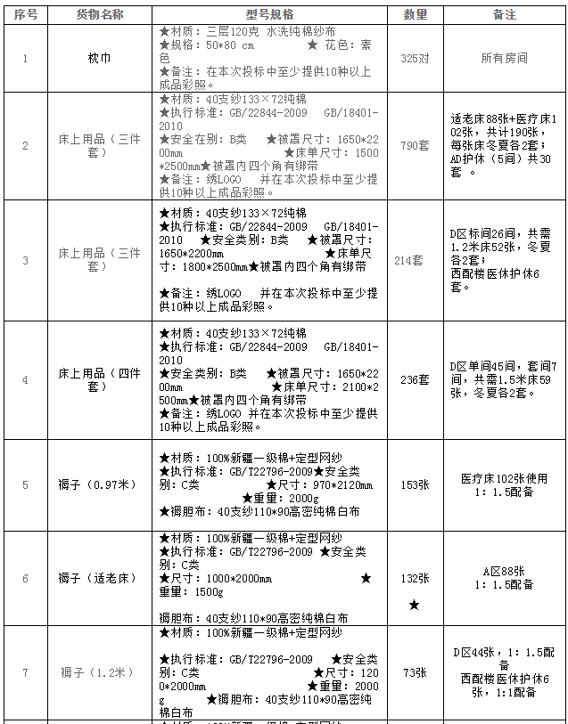項目名稱:烏蘭美健康養老提升項目床上用品類采購
