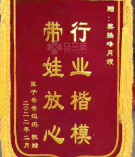 虎年新年伊始,烏蘭美母嬰服務中心醫月嫂樊換鋒高興地收到了一面錦旗,錦旗上面寫著“帶娃放心 行業楷模”八個大字。飽含深情的錦旗不僅肯定了烏蘭美醫月嫂工作的盡職盡責,更是感謝她們陪寶媽們度過了人生中如此重要的階段。